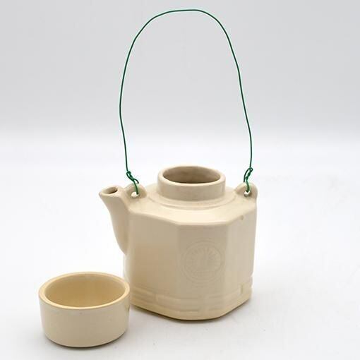 昔、駅弁に付属させるお茶入れとして用いられていた汽車土瓶です。