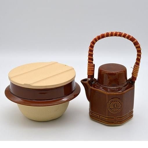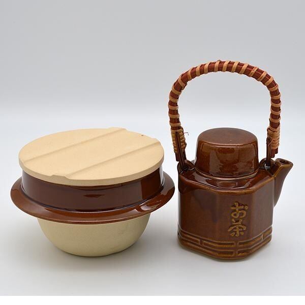 昔から岐阜県多治見市高田町で焼かれていた釜飯容器と汽車土瓶のセットです。飲食物は付属しません。