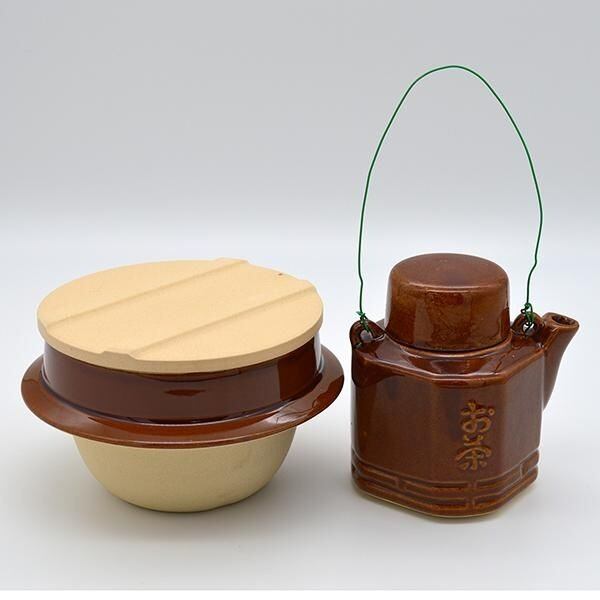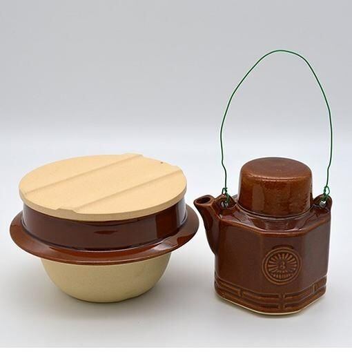 昔から岐阜県多治見市高田町で焼かれていた釜飯容器と汽車土瓶のセットです。飲食物は付属しません。