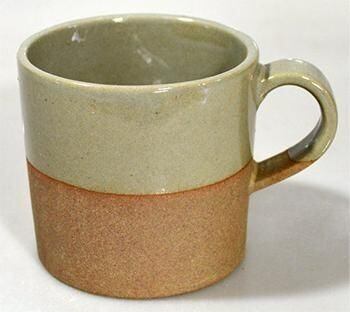 下から1/3くらいはあえて釉薬を掛けず、土物の雰囲気を存分に味わっていただける商品だと思います。ストレートなタイプのマグカップです。