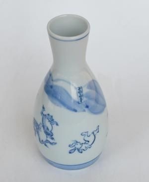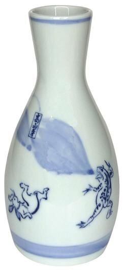 高山寺に伝わる国宝絵巻物。日本最古の漫画とも言われる「鳥獣戯画」。愛嬌たっぷりの動物たちを絵付けしました。こちらは徳利です。盃とセットでどうぞ。