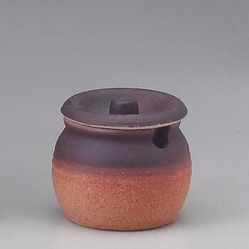 渋い風合いのツボです。本体が一部カットされているのでスプーンなどを差し込むこともできます(スプーンが大きいとうまくはまらない場合があります)。