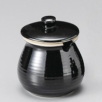 黒色の釉薬を用いたツボです。こちらの商品は本体がカットされています。特注でカットのないものも作成できます(応相談)。