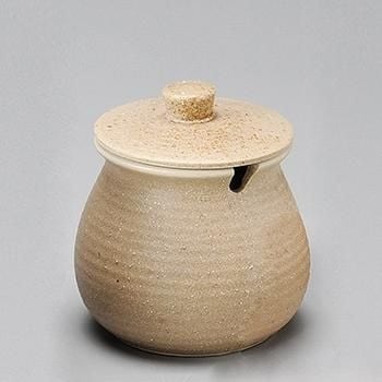 少しマット調な伊賀風の釉薬を用いたツボです。こちらの商品は本体がカットされています。特注でカットのないものも作成できます(応相談)。
