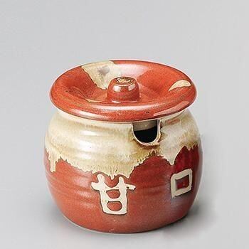 赤地に「甘口」と書かれた渋い風合いのカット付ツボです(日本製)。