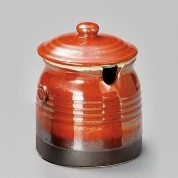 渋い風合いのツボです。本体が一部カットされているのでスプーンなどを差し込むこともできます(スプーンが大きいとうまくはまらない場合があります)。